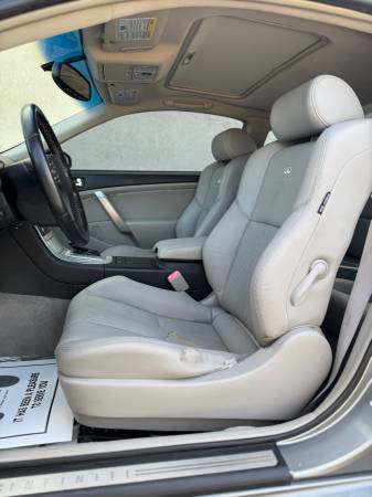 2005 INFINITI G35 COUPE, 3.5L 6 CYLINDER ENGINE, AUTOMATIC TRANSMISSION, 2 PREVIOUS OWNERS, ORIGINAL 126,668 MILES, CLEAN TITLE, NO ACCIDENTS, LEATHER INTERIOR, XENON HEADLIGHTS, HEATED FRONT SEATS, POWER FRONT SEATS, BRAKE ASSIST, ADJUSTABLE AUTOMATIC STEERING WHEEL, KEYLESS ENTRY & START, LEATHER STEERING WHEEL, POWER DOOR LOCKS, POWER MIRROS, POWER STEERING, POWER WINDOWS, TRACTION CONTROL, NO MODIFICATIONS, NEW COOLANT, NEW SPARK PLUGS, NEW RADIATOR, NEW SERPENTINE BELT, FOR MORE INFORMATION, PLEASE CALL OR TEXT 626-443-1528. THANK YOU.