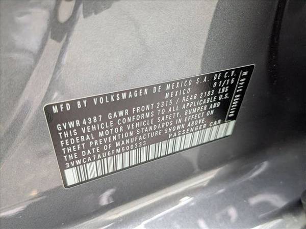 * Keyless Start * Platinum Gray Metallic * Titan Black; V-Tex Leatherette Seating SurfacesThis vehicle includes a Money-Back Guarantee* and passed our precise inspection process. Best of all the price you see is the price you pay. No haggling. No back and forth. No pressure. And this price is so good it is guaranteed. *Money-Back Guarantee is valid for 5 days or 250 miles, whichever comes first. Subject to certain terms and conditions. See store for details. Some restrictions apply.2015 Volkswagen Golf SportWagen TDI S Clean Diesel, Versatile Utility & German Precision , For Sale in Torrance, CA Looking for the perfect blend of fuel economy, versatility, and European driving dynamics? This 2015 Volkswagen Golf SportWagen TDI S is the hidden gem youve been searching fornow available at Land Rover South Bay , your go-to Torrance used car dealership in Los Angeles County . With its clean turbocharged diesel power , wagon practicality, and sleek German styling, this vehicle delivers exceptional value for Southern California drivers who want more than just another crossover. Whether you're commuting across the 405, heading up the PCH, or road-tripping beyond the San Gabriel Mountains, this SportWagen TDI offers outstanding comfort, performance, and range. Fuel Economy & Performance: Built for SoCal Roads Powered by a 2.0L TDI turbocharged diesel engine , this Golf SportWagen S delivers impressive EPA-estimated fuel economy of up to 43 MPG on the highway perfect for long hauls with fewer stops. Paired with a 6-speed manual or DSG dual-clutch automatic , this wagon offers smooth shifts and sporty handling that make every drive enjoyable. Volkswagens tight German suspension tuning ensures responsive steering and composed road manners, ideal for navigating through L.A. traffic or curving canyon roads near Malibu or Topanga. Interior Comfort & Practicality: Built to Adapt Inside, youll find a spacious cabin with seating for five and class-leading cargo space up to 66.5 cubic feet with the rear seats folded . Whether you're loading surfboards, groceries, or gear for a weekend getaway, this wagon offers the flexibility Southern California lifestyles demand. Features include: Premium cloth upholstery with supportive bucket seats Touchscreen infotainment system with Bluetooth connectivity Satellite radio and media interface Air conditioning with rear vents Power windows, mirrors, and remote keyless entry With a flat load floor and low lift-over height, the Golf SportWagen TDI is easier to load than most SUVswithout sacrificing driving feel or efficiency. Safety & Technology: Peace of Mind on Every Drive Volkswagen engineers their vehicles for durability and safety. This 2015 SportWagen includes: Multiple airbags and reinforced safety cage Electronic Stability Control (ESC) Anti-Slip Regulation (ASR) 4-wheel ABS with Brake Assist Daytime running lights and full-size spare This is a vehicle built with confidencedesigned to protect you and your passengers on every journey across LA. Why Buy from Land Rover South Bay? As part of the AutoNation network , we offer AutoNation 1Price , which means no-haggle pricing for a fast, stress-free buying experience. This vehicle has passed a comprehensive 125-point inspection , comes with a CARFAX Vehicle History Report , and qualifies for a 5-day/250-mile money-back guarantee . We have over 400 vehicles in stock across 4 massive lots in Torrance, Redondo Beach, Palos Verdes, and Long Beach , making Land Rover South Bay one of the most trusted Los Angeles used car dealerships for diesel and fuel-efficient vehicles. Call or Visit Today This TDI Wagon Wont Last Diesel wagons with clean CARFAX history are increasingly rare, and this one wont last longespecially in todays market where efficient, practical, and clean vehicles are in high demand. Schedule your test drive or visit Land Rover South Bay today to experience this 2015 Golf SportWagen TDI S for yourself. Unlock efficient luxury, German performance, and utility that works for every Southern California lifestyle.