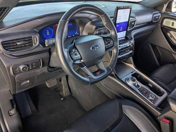 * Equipment Group 401A * Twin Panel Moonroof * Technology Package * Panoramic Roof * Leather Seats * Navigation System * 3rd Row Seat * Lane Keeping Assist * Keyless Start * Rear Spoiler * Cooled Front Seat(S) * 2Nd Row 35/30/35 Bench W/E-Z Entry & Armrest * Agate Black Metallic * Ebony; Leather Heated/Ventilated Sprt Captain'S Chairs * Engine: 3.0L Ecoboost V6 * Transmission: 10-Speed Automatic * Rear Auxiliary Controls Credit * Hands-Free Liftgate Delete * 2Nd Row Heated Seat Controls CreditThis vehicle includes a Money-Back Guarantee* and passed our precise inspection process. Best of all the price you see is the price you pay. No haggling. No back and forth. No pressure. And this price is so good it is guaranteed. *Money-Back Guarantee is valid for 5 days or 250 miles, whichever comes first. Subject to certain terms and conditions. See store for details. Some restrictions apply.Autonation Ford Valencia 661-255-6600 AutoNation Ford Valencia is excited to offer this 2022 Ford Explorer ST. This Ford includes: ENGINE: 3.0L ECOBOOST V6 V6 Cylinder Engine Gasoline Fuel Turbocharged TWIN PANEL MOONROOF Panoramic Roof Generic Sun/Moonroof Sun/Moonroof EQUIPMENT GROUP 401A Heated Rear Seat(s) Integrated Turn Signal Mirrors HD Radio Mirror Memory Tires - Front Performance Aluminum Wheels Navigation System Automatic Parking Power Mirror(s) Seat Memory Hands-Free Liftgate Auto-Dimming Rearview Mirror Back-Up Camera Heated Mirrors Adaptive Cruise Control AM/FM Stereo Adjustable Steering Wheel Satellite Radio Tires - Rear Performance Premium Sound System Power Folding Mirrors Requires Subscription Remote Trunk Release TECHNOLOGY PACKAGE HANDS-FREE LIFTGATE DELETE *CREDIT* Power Liftgate Remote Trunk Release 2ND ROW 35/30/35 BENCH 3rd Row Seat Rear Bench Seat Pass-Through Rear Seat REAR AUXILIARY CONTROLS CREDIT *CREDIT* TRANSMISSION: 10-SPEED AUTOMATIC (STD) Transmission w/Dual Shift Mode A/T 10-Speed A/T EBONY, LEATHER HEATED/VENTILATED SPRT CAPTAIN'S CHAIRS 2ND ROW HEATED SEAT CONTROLS CREDIT *CREDIT* AGATE BLACK METALLIC *Note - For third party subscriptions or services, please contact the dealer for more information.* Why does this vehicle look so great? The CARFAX report shows it's only been owned by one owner. The Ford Explorer ST offers a fair amount of utility thanks to its advanced features and unique styling. It's also quite sporty, and injects an ample amount of handling chutzpah into the ridin'-high body of a family-friendly SUV. You deserve a vehicle designed for higher expectations. This Ford Explorer ST delivers with a luxurious, well-appointed interior and world-class engineering. Where do you want to go today? With 4WD, you can choose to drive virtually anywhere and on terrain 2WD vehicles can't handle. The Explorer ST has been lightly driven and there is little to no wear and tear on this vehicle. The care taken on this pre-owned vehicle is reflective of the 35,706mi put on this Ford. Added comfort with contemporary style is the leather interior to heighten the quality and craftsmanship for the Ford Explorer ST. Drive any city's streets like you've lived there all your life using the navigation system on this Ford Explorer. Rare is the vehicle that has been driven so gently and maintained so meticulously as this pre-owned beauty. This Ford Explorer ST is covered under the Ford reliable & trusted factory warranty. So, if you're in the market for an incredible vehicle which provides the manufacturer-backed assurance that everyone deserves, then this is the vehicle for you.