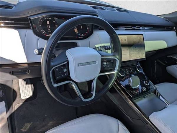 * Black Exterior Pack * Santorini Black Metallic * Panoramic Roof * Leather Seats * Navigation System * 21" Full Size Spare Wheel * Wheels: 21" Satin Dark Grey (Style 5126) * 20-Way Elec Heated & Ventilated Fr Seats W/Memory * Lane Keeping Assist * Emergency Pack * Keyless Start * Rear Spoiler * Cooled Front Seat(S) * Light Cloud; Perforated Windsor Leather Seat TrimThis vehicle includes a Money-Back Guarantee* and passed our precise inspection process. Best of all the price you see is the price you pay. No haggling. No back and forth. No pressure. And this price is so good it is guaranteed. *Money-Back Guarantee is valid for 5 days or 250 miles, whichever comes first. Subject to certain terms and conditions. See store for details. Some restrictions apply.Thank you for visiting another one of Jaguar Land Rover Woodland Hills's online listings! Please continue for more information on this 2023 Land Rover Range Rover Sport SE with 19,597mi. This Land Rover includes: WHEELS: 21 SATIN DARK GREY (STYLE 5126) LIGHT CLOUD, PERFORATED WINDSOR LEATHER SEAT TRIM Leather Seats SANTORINI BLACK METALLIC BLACK EXTERIOR PACK 21 FULL SIZE SPARE WHEEL Conventional Spare Tire EMERGENCY PACK (PIO) 20-WAY ELEC HEATED Cooled Front Seat(s) Heated Front Seat(s) *Note - For third party subscriptions or services, please contact the dealer for more information.* This Land Rover Range Rover Sport SE is an incredibly versatile vehicle that is a must have for any family. Put performance, safety, beauty, sophistication and all the right amenities into a car, and here it is! Now you can own luxury without the luxury price tag! Take home this 2023 Land Rover Range Rover Sport SE and enjoy the safety and added performance of AWD. One of the best things about this Land Rover Range Rover Sport is that it has low, low mileage. It's ready for you to truly break it in. Added comfort with contemporary style is the leather interior to heighten the quality and craftsmanship for the Land Rover Range Rover Sport SE.