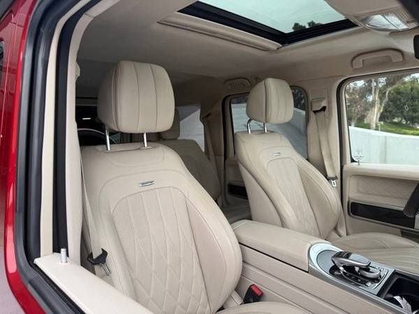 * Exclusive Interior Package Plus * Wheels: 22" Amg ® Cross-Spoke Forged * Seat Comfort Package * Manufaktur Cardinal Red Metallic * Spare Wheel Cover In Vehicle Color * Sun/Moonroof * Leather Seats * Navigation System * Lane Keeping Assist * Keyless Start * Cooled Front Seat(S) * Amg ® Brake Calipers In Red * Brown Ash Wood Trim * Macchiato Beige/Brown; Exclusive Nappa Leather TrimThis vehicle includes a Money-Back Guarantee* and passed our precise inspection process. Best of all the price you see is the price you pay. No haggling. No back and forth. No pressure. And this price is so good it is guaranteed. *Money-Back Guarantee is valid for 5 days or 250 miles, whichever comes first. Subject to certain terms and conditions. See store for details. Some restrictions apply.FOR SALE: 2023 Mercedes-AMG G 63 – Cardinal Red over Macchiato Beige , Fully Loaded & Mint A Twin-Turbo Icon. The Pinnacle of AMG Engineering. Turn heads and own the road in this 2023 Mercedes-AMG G 63, finished in breathtaking Manufaktur Cardinal Red Metallic. Beneath the iconic boxy silhouette lies a 577-hp handcrafted twin-turbo V8, delivering relentless power and unmistakable AMG performance. Design & Exterior Highlights: Manufaktur Cardinal Red Metallic Paint 22” Forged AMG Wheels – Bold and lightweight Privacy Glass / Factory Tinted Windows Sunroof – Power tilt/sliding Signature AMG styling with flared wheel arches, side-exit exhaust, and aggressive grille ? Interior: A Luxurious Command Center Exclusive Interior Package Plus Macchiato Beige & Espresso Brown Nappa Leather Macchiato Beige Headliner Brown Ash Wood Trim – Sophisticated warmth throughout Heated & Ventilated Front Seats Heated Rear Seats Energizing Comfort Control – Customizes ambient lighting, massage, scent, and climate Technology & Driver Assistance MBUX Navigation System with natural voice control Paddle Shifters – Manual gear control for spirited driving Blind Spot Warning Collision Warning with Active Brake Intervention Surround View & Rearview Cameras Adaptive Cruise Control & Lane-Keeping Assist Entertainment & Connectivity Burmester® Surround Sound System Apple CarPlay & Android Auto Multiple USB-C ports, Bluetooth® Audio Streaming AMG Performance Digital Cockpit Display Why This G 63? This isn't just a G-Class—it's an AMG G 63 with every box checked. A low-mileage, meticulously maintained example, tastefully spec’d in one of the most desirable color combinations on the market today. Whether you’re climbing a mountain trail or arriving at a gala, this G-Wagon commands attention and delivers excellence. Clean Title Still Under Factory Warranty (if applicable) Garage-Kept, Non-Smoker