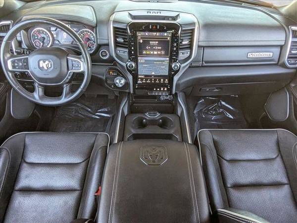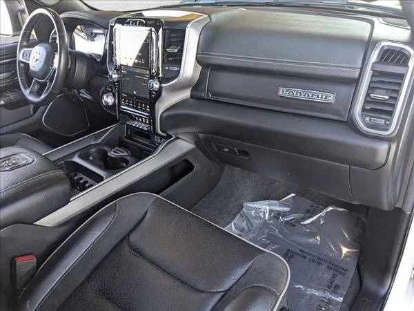 * Laramie Level B Equipment Group * Night Edition * Engine: 5.7L V8 Hemi Mds Vvt Etorque * Wheels: 22" X 9" Forged Aluminum * Black; Leather Trimmed Bucket Seats * Power Running Boards * Leather Seats * Anti-Spin Differential Rear Axle * Parksense Front/Rear Park Assist W/Stop * Navigation System * Mopar Front & Rear Rubber Floor Mats * Rear Underseat Compartment Storage * Keyless Start * Cooled Front Seat(S) * 3.21 Rear Axle Ratio * Bright White Clearcoat * Front License Plate Bracket * Radio: Uconnect 5 Nav W/12.0" Display * Tires: 285/45R22Xl Bsw All Season * Transmission: 8-Speed Automatic (8Hp75)This vehicle includes a Money-Back Guarantee* and passed our precise inspection process. Best of all the price you see is the price you pay. No haggling. No back and forth. No pressure. And this price is so good it is guaranteed. *Money-Back Guarantee is valid for 5 days or 250 miles, whichever comes first. Subject to certain terms and conditions. See store for details. Some restrictions apply.AutoNation Chrysler Dodge Jeep Ram Valencia Call 661-219-0600 Thank you for your interest in this 2023 Ram 1500 at AutoNation Chrysler Dodge Jeep Ram Valencia. This pre-owned vehicle is one of thousands in our massive used car inventory at AutoNation. This Ram includes: ENGINE: 5.7L V8 HEMI MDS VVT ETORQUE Gasoline/Mild Electric Hybrid 8 Cylinder Engine BRIGHT WHITE CLEARCOAT TRANSMISSION: 8-SPEED AUTOMATIC (8HP75) 8-Speed A/T Transmission w/Dual Shift Mode A/T LARAMIE LEVEL Fog Lamps Automatic Highbeams Variable Speed Intermittent Wipers HD Radio Navigation System Intermittent Wipers Rear Parking Aid Rear Collision Mitigation Rear Defrost Driver Monitoring AM/FM Stereo LED Headlights Satellite Radio Bluetooth Connection Blind Spot Monitor Premium Sound System Requires Subscription Cross-Traffic Alert Remote Trunk Release Rain Sensing Wipers MOPAR FRONT Floor Mats BLACK, LEATHER TRIMMED BUCKET SEATS Leather Seats Bucket Seats POWER RUNNING BOARDS Power Retractable Running Boards Running Boards/Side Steps NIGHT EDITION Integrated Turn Signal Mirrors Tires - Front Performance Locking/Limited Slip Differential Aluminum Wheels Power Mirror(s) Heated Mirrors Tires - Rear Performance Power Folding Mirrors Running Boards/Side Steps QUICK ORDER PACKAGE 27H LARAMIE *Note - For third party subscriptions or services, please contact the dealer for more information.* You appreciate the finer things in life, the vehicle you drive should not be the exception. Style, performance, sophistication is in a class of its own with this stunning Ram 1500 Laramie. It's not a misprint. And the odometer isn't broken. This is a very low mileage Ram 1500. A rare find these days. Added comfort with contemporary style is the leather interior to heighten the quality and craftsmanship for the Ram 1500 Laramie. Take the guesswork out of where you are going with the top-tier navigation system found on this exceptional Ram 1500. AutoNation Chrysler Dodge Jeep Ram Valencia Call 661-219-0600 23820 Creekside Dr. Valencia Ca 91355