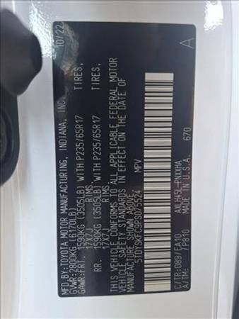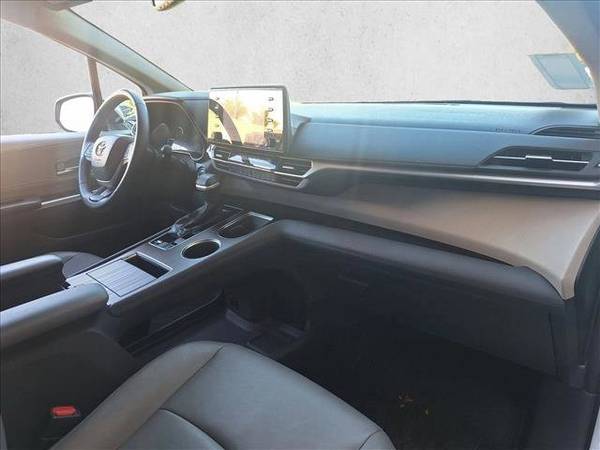 * Sun/Moonroof * 3rd Row Seat * Special Color * All Weather Floor Liners (Tms) * Roof Rails * Lane Keeping Assist * T155/80R17 Temporary Spare Tire * Keyless Start * Rear Spoiler * 50 State Emissions * Graphite; Softex Seat Trim (Ea) * Wind Chill PearlThis vehicle includes a Money-Back Guarantee* and passed our precise inspection process. Best of all the price you see is the price you pay. No haggling. No back and forth. No pressure. And this price is so good it is guaranteed. *Money-Back Guarantee is valid for 5 days or 250 miles, whichever comes first. Subject to certain terms and conditions. See store for details. Some restrictions apply.Interior Audio Plus-9-in.Touchscreen w/8-Speakers Apple CarPlay & Android Auto Compatible USB Media Port, 6 USB Charge Ports SiriusXM w/3-Month Platinum Plan Trial Four Zone Auto Climate Control SofTex-Trimmed Seats, Heated & Power Front Seats, 2nd-Row Captain's Chairs w/ Super-Long-Slide Feature, 60/40 One-Motion-Stow w/Split & Stow 3rd Row Seat Rear Seat Reminder For Full Product Details, Please Visit Toyota.com/Sienna Exterior LED Headlights with Auto On/Off Feature Hands-Free Dual Power Sliding Side Doors Power Liftgate Frt & Rear Parking Assist w/ Auto Brake Power Tilt / Slide Moonroof Exterior Dimensions Mechanical / Performance 2.5L 4-Cylinder Engine 245 Combined Net Horsepower Electronic Continuous Var. Tran. (ECVT) 17-in Wheels Electronic On-Demand All-Wheel Drive Safety and Convenience Toyota Safety Sense 2.0: Pre-Collision Sys w/Pedestrian Detection, Full-Speed Range Dynamic Radar Cruise Control, Lane Departure Alert w/Steering Assist, Lane Tracing Assist, Automatic High Beams, Road Sign Assist STAR Safety System LATCH-Lower Anchor & Tether for Children Blind Spot Monitor w/ RCTA 5-Door Smart Key w/ Push Button Start Connected Services Capable. 4G network dependent. See Toyota.com for details.