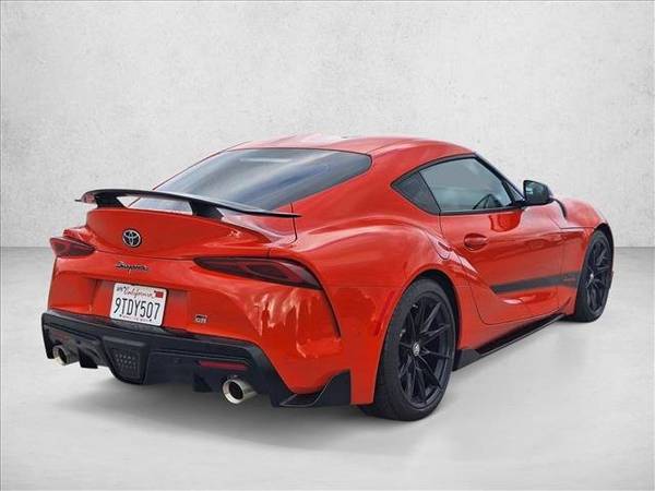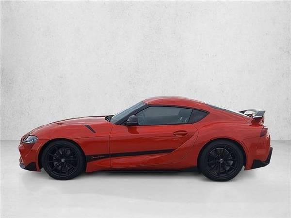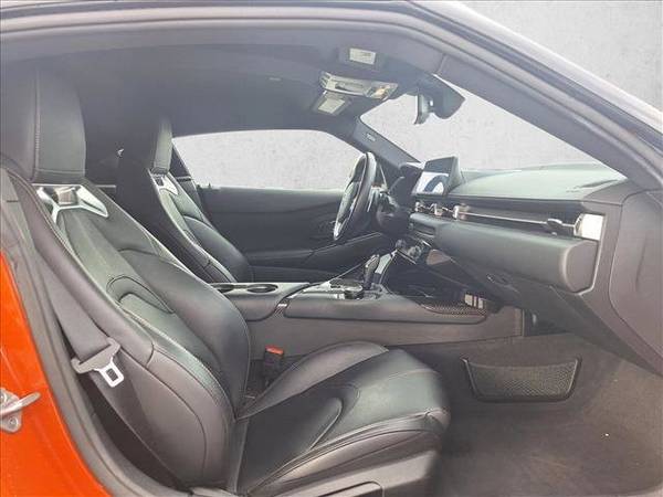 The following items have been reconditioned on this vehicle: new brakes and all new tires! * Leather Seats * Navigation System * Lane Keeping Assist * Keyless Start * Rear Spoiler * Heads-Up Display * 50 State Emissions * Black; Leather Seat Trim * Driver Assist Package * Mikan Blast * Special EditionThis vehicle includes a Money-Back Guarantee* and passed our precise inspection process. Best of all the price you see is the price you pay. No haggling. No back and forth. No pressure. And this price is so good it is guaranteed. *Money-Back Guarantee is valid for 5 days or 250 miles, whichever comes first. Subject to certain terms and conditions. See store for details. Some restrictions apply.Mechanical / Performance 3.0L Twin-Scroll Turbo, Inline 6-Cyl 382 Horsepower, 368 lb-ft of Torque 8 Speed AT w/ Paddle Shifters Rear-Wheel Drive Active Rear Sport Diff; Active Exhaust Double Joint Type McPherson Strut FR Suspension; Multi-Link RR Suspension Sport-Calibrated Elec Power Steering Adaptive Variable Sport Suspension w/ Michelin Pilot Super Sport Tires Tires: FR 255/35 ZR19, RR 275/35 ZR19 FR: Brembo 4-Piston Vent. Disc Brakes RR: Single Piston Cast Iron Disc Brakes Black Front Brake Calipers w/GR Logo Aero Underbody Panel; Sport Pedals Safety and Convenience 6-Lens Auto-Leveling LED Headlights LED Daytime Running Lamps & Tail Lights Automatic High Beams; Speed Limit Info Pre-Collision Syst w/ Pedestrian Detect Lane Depart Warning w/ Steering Assist Electronic Parking Brake; Traction Mode Heated Power Sport Seats w/ Adjustable Lumbar and Bolsters, Driver Seat Memory Auto-Fold, Heated Exterior Mirrors 12 Speaker JBL HiFi Audio System 8.8 Touchscreen w/ Navigation Touchpad Rotary Control SiriusXM w/3-Month Platinum Trial Wireless Apple CarPlay Compatible Wireless Charging For Full Product Details, Please Visit Toyota.com/gr-supra