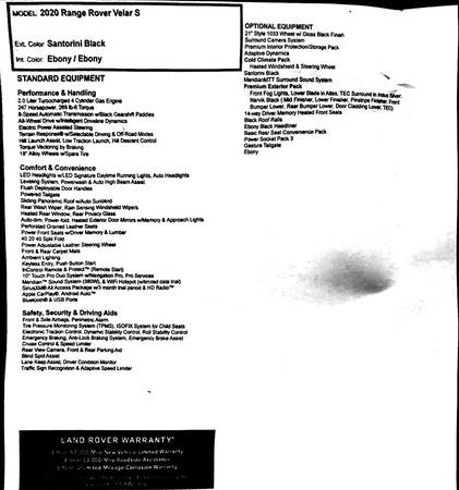Selling a 2020 Land Rover Range Rover Velar P250 S in stunning Santorini Black. One owner, clean California title with pink slip in hand. Only 42,000 miles. Vehicle is in excellent condition and has been meticulously maintained, with all service and maintenance receipts available.