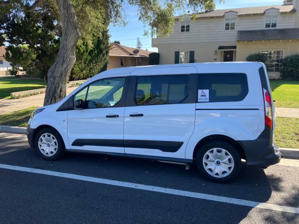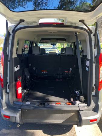 2016 Ford Transit Connect wheelchair transport van. Rear ramp entry with four retracting tie-downs to hold the chair in place. Professional conversion by Sunset Vans in Corona. Room for one person in a wheelchair, as well as middle row seating for three. So seating for five plus wheelchair passenger. Both side doors slide open for easy passenger access. We have had this van since 2021 and never had any problem with it. We have done regular oil changes and maintenance and had a new battery installed one month ago.