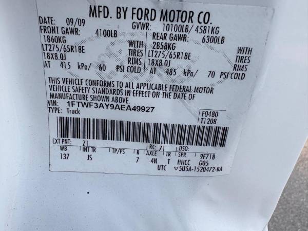 VIN: 1FTWF3AY9AEA49927