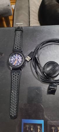 Samsung Gear S3 Frontier smart watch, 46mm for $25. Comes with multiple bands and charging unit w/ cord. Wifi compatible and links up with any Samsung phone. Stainless steel, but has a black case...
