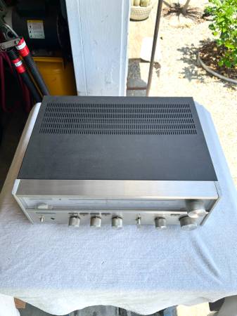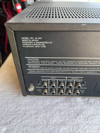 Great vintage receiver / amp in great working condition. Harmon Kardon HK450 model from late 70's or early 80's. Nice clean / minimalist aesthetic with the silver face and gunmetal gray cowl. Good working condition, all channels, lights etc. Just thinning out some audio gear and making space in the garage. Cosmetically very clean overall. Images show condition accurately. Ready for immediate use.