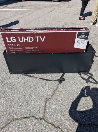 Never used, but has a little wear and tear from storage. TV NOT INCLUDED. The empty TV box is there just for demonstration purposes.
