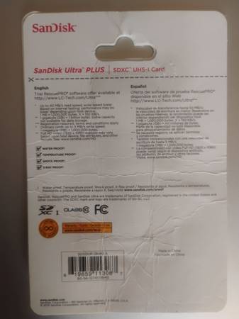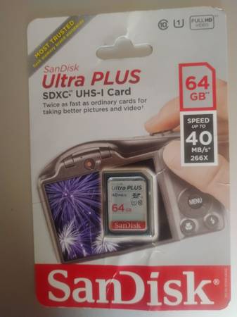 SanDisk Ultra Plus SDXC UHS-I card, 64GB memory, 40MB/s speed. Please see the photos for details.