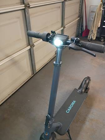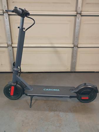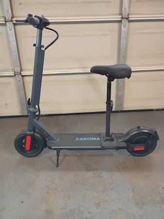 Caroma Electric Scooter great shape only used a few times, 25 mile range ( according to info ) max speed 20 mph, 500 watt motor, has a comfy seat that is removeable, wide deck for standing on.Will make a good Christmas gift or just a shameless gift for yourself. I bought in May of 2024.