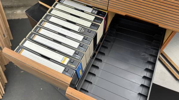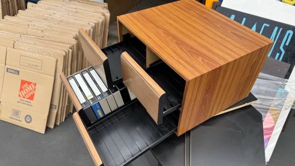3x vintage VHS storage drawers for sale, $60 each or take all 3 for $150. Each holds 48 cassettes, 12 in each drawer. Drawer fronts are discolored from sun, in great shape otherwise. VHS cassettes...