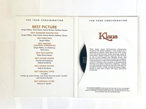 ** Klaus FYC Netflix Screener ** LIKE NEW ** $99