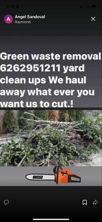 Hi my name is Angel we do yard cleanups🍃🍃🚛weed wacking hedge trimming mowing lawns all landscape work we do it. We also do junk removal we haul all trash From construction debris to furniture green waste we do it pick up and haul your junk. Our number is 16262951211 free estimates.