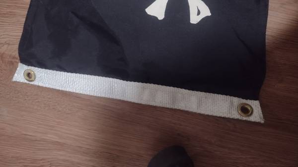 Hi! This Pirate Flag is long, in great condition and has Rivets for flying it, or hanging it. Will be home for pickup. Thank You!