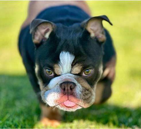 Rehousing 2 1/2 year old female English bulldog never been bred it should come on heat soon daughter of Rushmore and granddaughter of chocorrol pet only Micro Chocolate 🍫