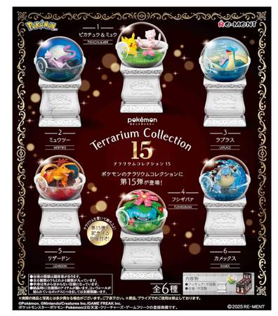 This Pokemon Terrarium Collection 15 includes all six terrarium designs, each featuring Pokemon enjoying their habitats. This full set includes the following characters: Pikachu & Mew, Mewtwo, Blastoise, Lapras, Venusaur, and Charizard. Place the terrariums around the house and office, or display them all in one spot for an exciting viewing experience