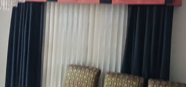 Several different widths. Lined. Quality. Made of polyester and are machine washable. Price per panel is $100 each except there are 2 larger ones that are $200 each. Original cost was about $5,000...