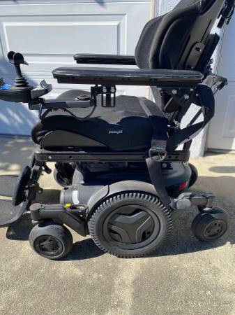 Fully motorized, quiet power wheelchair. (PerMobile M3 brand). Good condition (only used a few months). Easy operation joystick control with detachable headrest. Power tilt, power recline fully recline; legs and back recline feature can operate independently. Has seat lift height rise or lower function. Mid wheel drive so it has easy operation in confined areas (inside house can go room to room in narrow hallways). Also easily goes up handicap vehicle ramps for transport. Comes with charger. $2,400. Also 2 ramps avail