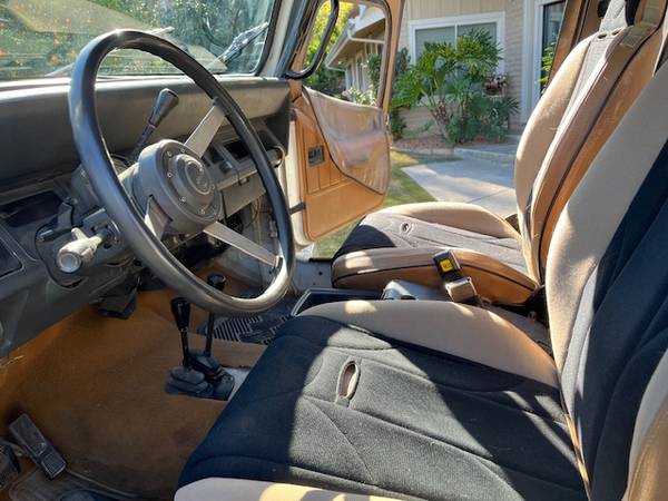 Hard to find 4.0 L, automatic with rear seat and soft top. An extremely competent rock crawler. An easy to live with daily driver. A little rough around the edges cosmetically, but in excellent mechanical condition. No fluid leaks, good compression, no engine blowby. Passes CA smog without any problems. 150,000 miles. 3000-mile oil changes using Mobil 1 synthetic oil. Cash only. Will not ship.