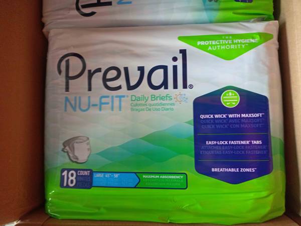 Brand New. 18ct LARGE 45-58" Daily Briefs ADULT Protective UNDERWEAR Diaper, 18 Counts/$18 per pack. I have 16 packs.