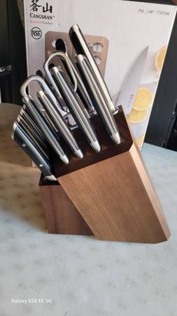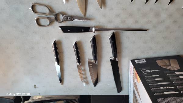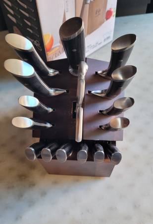 Easy Driveway pick up. Pay cash or Zelle at the time of pick up. Great condition. 17-Piece Set Includes: 8" Chef's Knife 8" Bread Knife 6" Rocking Santoku Knife 6" Boning Knife 5" Serrated Utility...