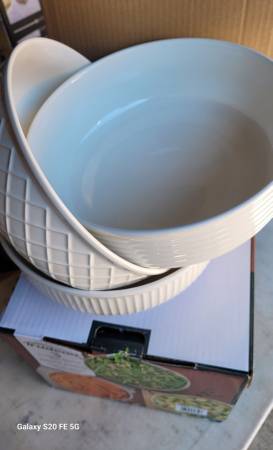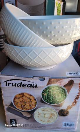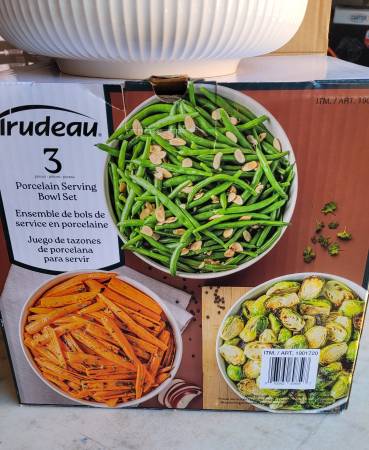 Elevate everyday dining and special gatherings with the Trudeau Porcelain Serving Bowl Set. Crafted from fine porcelain, each bowl features a distinctive raised pattern, making every piece one of a kind. Their harmonious design brings a refined touch to any table. Microwave and dishwasher safe, they combine beauty with everyday convenience and versatility.