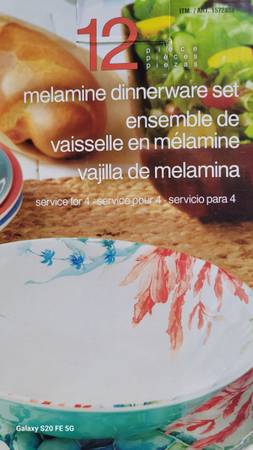 Easy Driveway pick up. Pay cash or Zelle at the time of pick up. Features: * 100% Melamine * Durable, perfect for indoor and outdoor entertaining * Dishwasher safe Includes: * (4) 10.9" Dinner Plate...