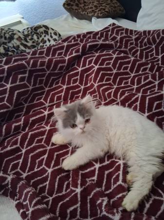 Adorable male persian kitten. Ready for a new home. Playful and loves alot of attention. Very very lovable. He is also very smart. If interested please text there is a rehoming fee.