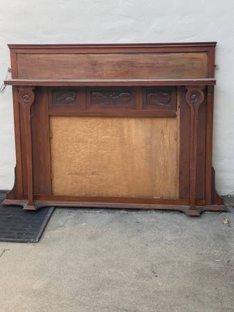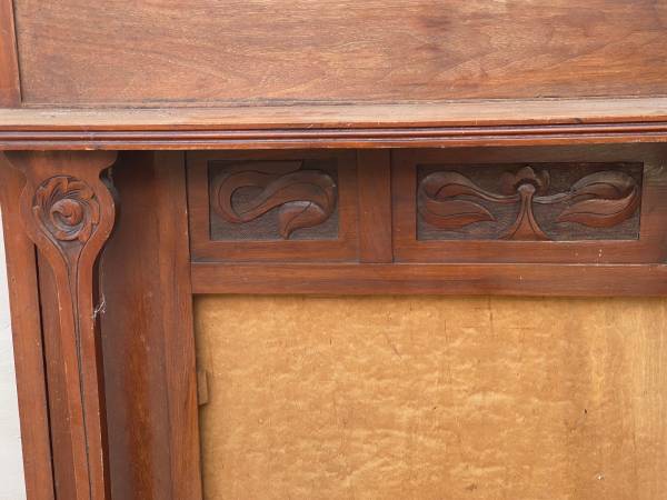 Antique fireplace over-mantle with hand-carved designs - needs repair. $20 54" wide by 38" tall