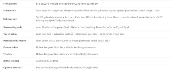 8. The total Cabin size is 91 Square Ft(8.5 Square Meter), and can be expanded by custom order!