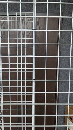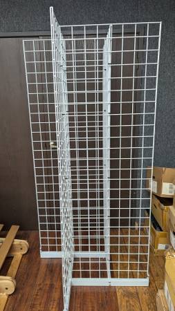 Great condition 4 pcs of 24” x 74” grid racks to make 1 large tower Bound together with zip ties 3"x3" Square Grids + 55 display hooks Pick up in walnut / Diamond bar only