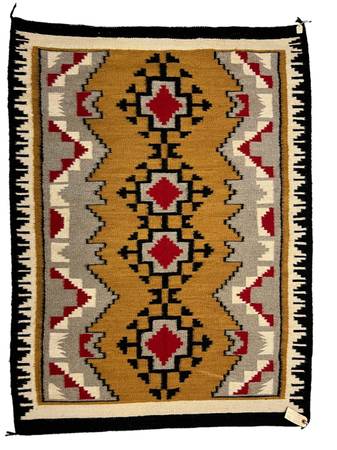 STUNNING Impeccable LARGE NAVAJO / DINE WOOL Area RUG with original makers tag! Vivid large 1970's hand woven rug by Native American Indian master weaver Juanita Tsosie of Many Farms, Arizona! Piece is in excellent / impeccable condition with original tag as photographed. It has never been used on the floor, has always been rolled up, and only been displayed.