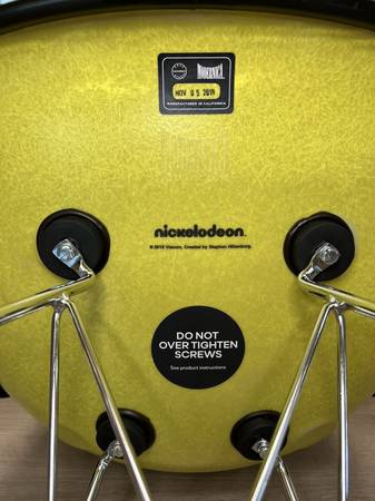 Modernica has teamed up with Chicago-based visual artist Louis De Guzman and global music artist J Balvin celebrating SpongeBob SquarePants 20th anniversary. Created by Stephen Hillenburg this fiberglass shell Chair on a metal eiffel base is a limited edition from Viacom 2019. Made by Modernica of Los Angeles and stamped on the bottom Nov 5th, 2019. Chair is used in excellent condition with minimal wear and soiling as photographed.