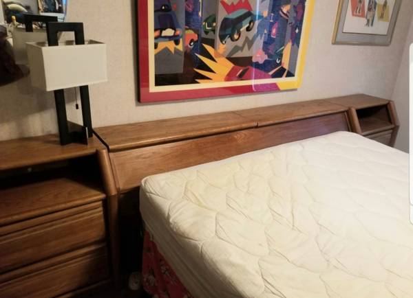 Solid Wood King Headboard w Nightstands, 3 Piece Bedroom Furniture Set (Does Not Include Bed or Bed Frame) Non Smoking Home Headboard has 2 big lift-top compartments Total length is 11 feet...