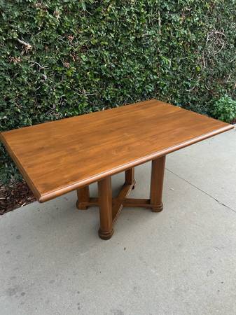 Beautifully refinished and in excellent condition. This solid wood, rectangular table features a classic farmhouse look with plenty of character. A great size for everyday use or entertaining—sturdy, stylish, and ready for your home!