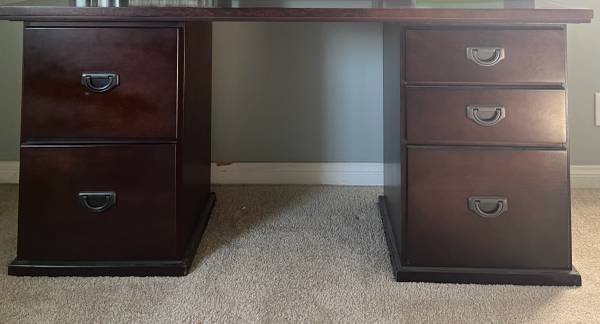 All pieces comes apart for easy moving or configuration. Table top, 2 filing drawers,