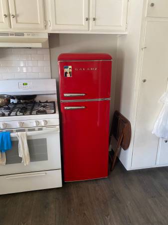 I'm offering everything at a reasonable price. There's a FRIDGE, a SOFA, a LAMP, SOME DESKS, A KITCHEN