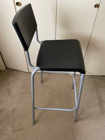 Bar Stool Dining / Office Chair plastic-aluminum in good condition. Cash only. Measurements : height 35 3/8’’; seat: height 24 3/4’’; width 13 3/8’’; length 14 1/8’’