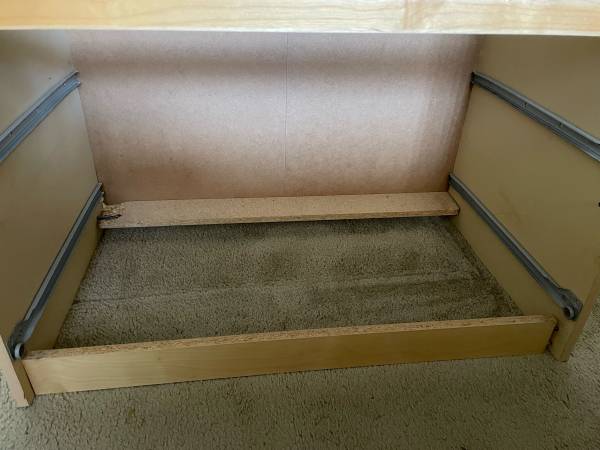 3-drawer Dresser Chest, oak effect in OK condition: the bottom drawer is difficult to open and close; the top and middle drawers are OK. The frame is solid but it may need a repair or it can be used...