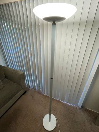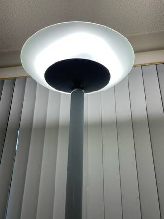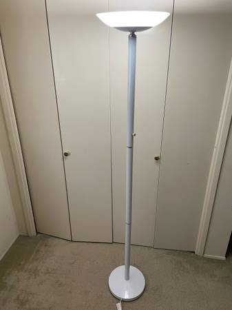Full spectrum floor lamp with a dimmer switch, it’s glare-free and energy-efficient, looks like new. It provides a bright white light that doesn’t irritate your eyes (unlike the LEDs). It’s really stylish but I’m moving away and decided to sell it.