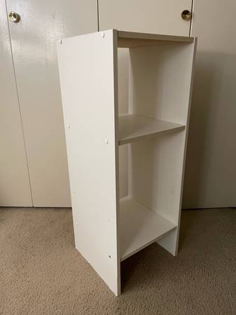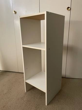 Shelf Bookshelf Bookcase Organizer with open back, white, wood. Cash only. Measurements: height 31.5’’; length 12’’; width 11.5’’