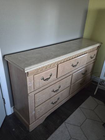 Selling a beautiful solid wood King size bed frame in a light oak finish, includes box springs (mattress not included). Sturdy and well-built — great for any bedroom.