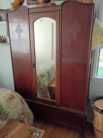 This piece has all of its original hardware . It is easy to transport the top piece comes off of the bottom piece surprisingly light .