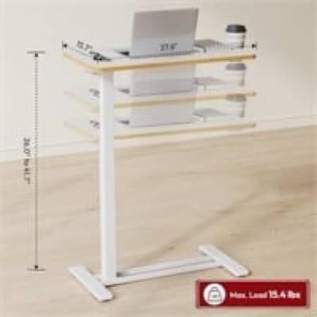 SANODESK Medical Adjustable Overbed Bedside Table with Hidden Casters, Pneumatic Mobile Laptop Computer Standing Desk Cart with Tray, Hospital and Home Use(27.6" W x 15.7" D, White) Adjustable...