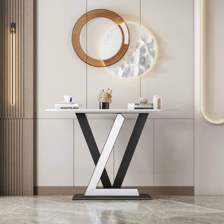 VASOENY 47.24"' Modern Console Table, Sintered Stone Narrow Entryway Table with Geometric Shape Metal Base for Entrance, Living Room, Hallway