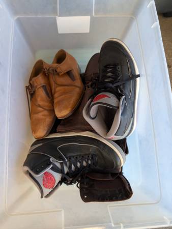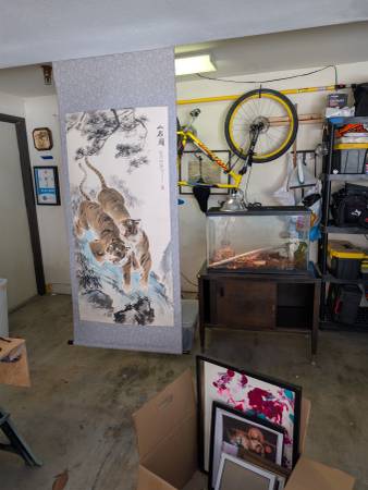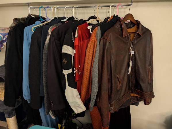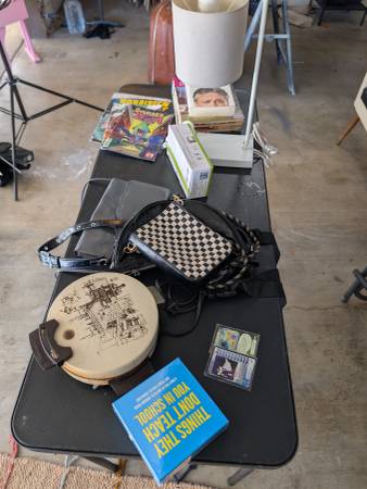 Furniture, lamps, books, mini kids piano, chairs, water heater, nightstand, Heineken ice bucket, medium dog crate, art work, posters, vinyl record albums, women's denim from madewell and old navy, men's air jordans and other shoes, LA Kings popcorn bag, snorkels and mask, camelback bag, plant grow light, camera shoulder mount, picnic backpack with glassware, nightstand end table, collectibles, fine glassware & crystal, kitchen tools, cast iron pan, vape and juice, herbal burnables & incense, tools and automotive, black and Decker corded jigsaw, motorcycle jacket, high end and cheap men's & women's clothing, bras, and shoes, posters, vintage clothing and collectibles and memorabilia, laptop cases, art frames, table lamp, hanging light, large dog crate, mirror, area rug, and more.
