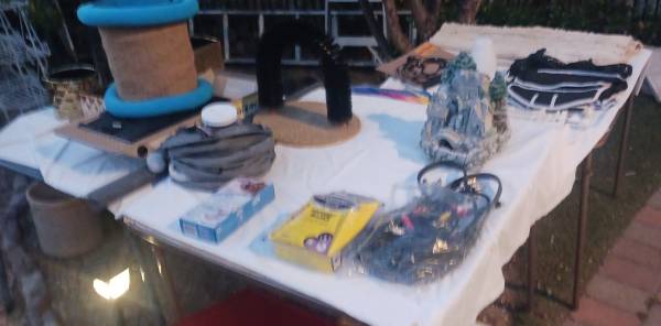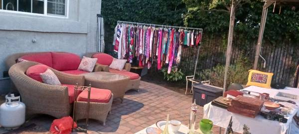 8am to 5pm. Yard furniture, housewares, blackout drapes and all kinds of other items.