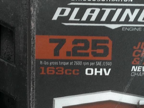 Craftsman push mower. It is the 7.25 horsepower Platinum Series model. In good working condition. It has the grass catcher or use it as a mulcher. It has the quick disconnect on the mower deck to attach a garden hose to clean the clippings from the underside (with engine running). Always starts on the 1st - 4th pull. I didn't shine it up to sell it. It's as I used it. I'm not trying to hide anything because there's nothing to hide. I hosed it lightly after each use, wiped it down let it dry and put it away. $175 obo